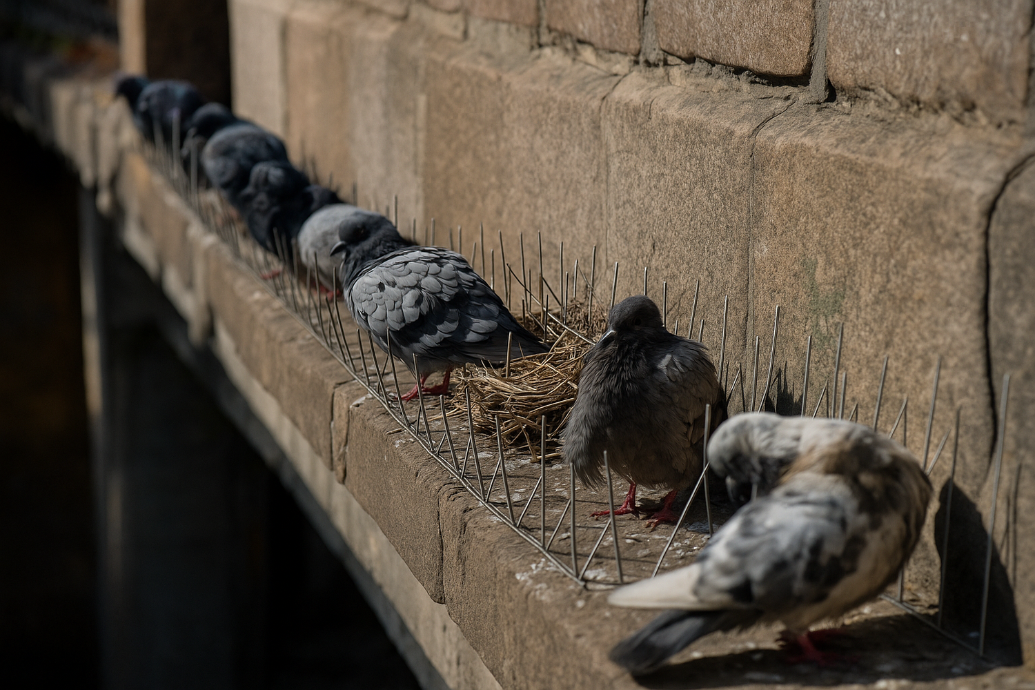 Cette image est la preuve que certaines méthodes ne suffisent plus. Les pigeons s’habituent, s’adaptent… et vont jusqu’à construire leurs nids entre les pics censés les repousser.