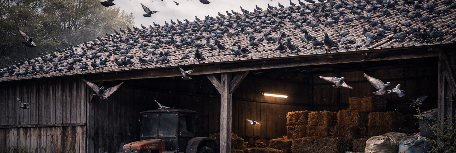 ⚠️ Important : Cette prestation s'adresse exclusivement aux propriétaires de terrains privés (entrepôts, hangars, exploitations agricoles, sites industriels, propriétés rurales) confrontés à des colonies importantes de pigeons. L'intervention se déroule dans un cadre strictement sécurisé et contrôlé.